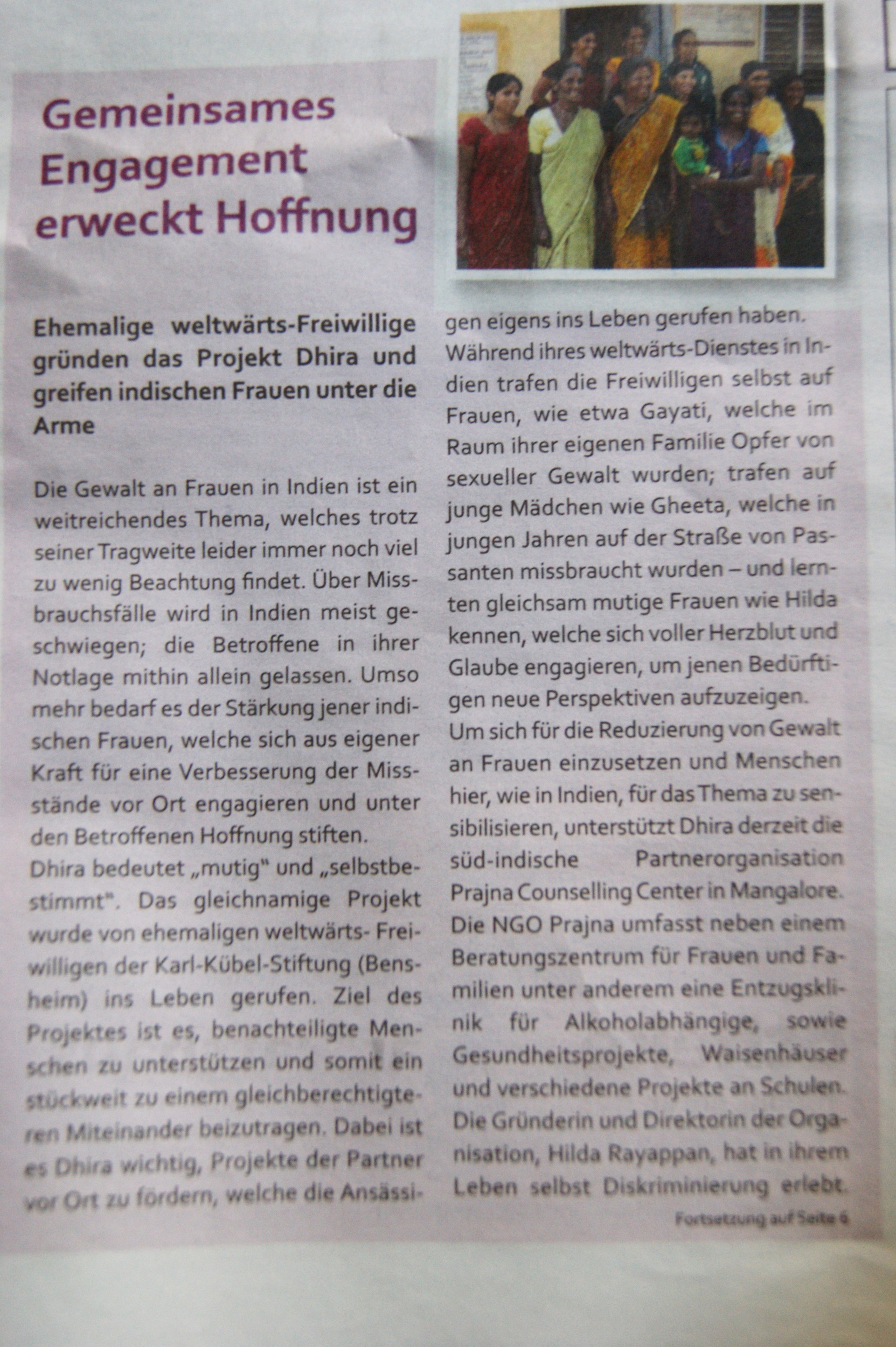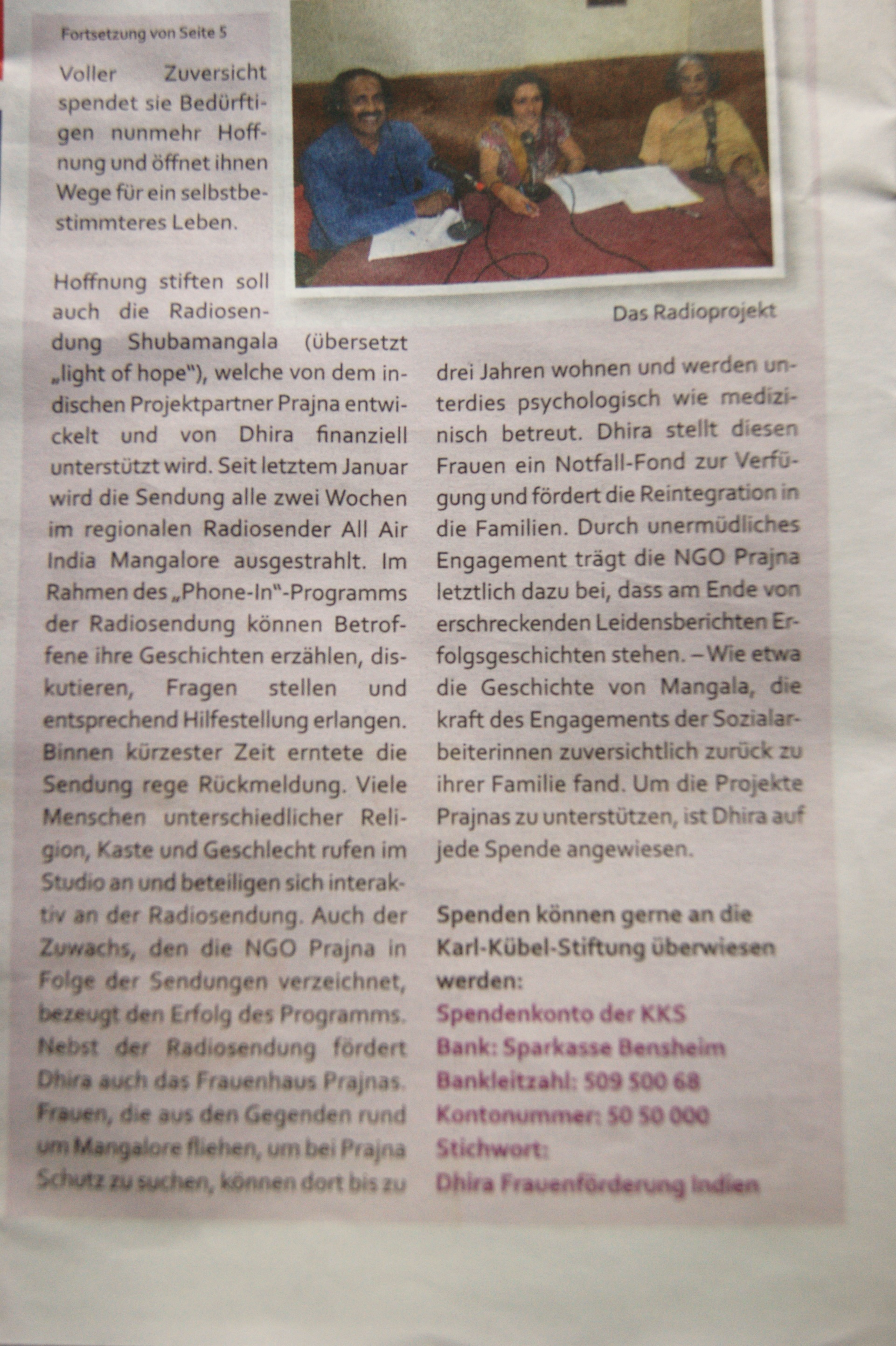 Die Messe unter dem Motto „Lebenslust“ bot Dhira Raum zur Mitteilung und Begegnung. Außerdem gab es für Besucherinnen und Besucher zum ersten Mal die Möglichkeit Dhira-Postkarten gegen Spenden zu erwerben.
